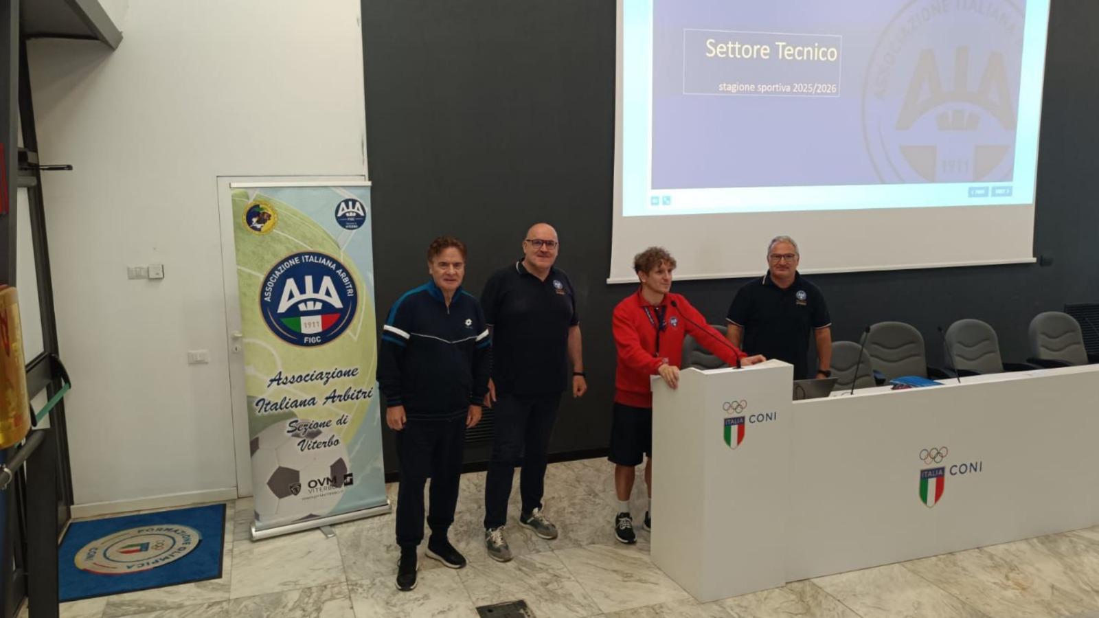 La giornata di sabato si è aperta con il raduno congiunto insieme alla Sezione AIA di Viterbo, in un’ottica di collaborazione e confronto. Dopo i saluti istituzionali dei Presidenti Ennio Mariani e Daniele Viotti, è intervenuto il componente del Settore Tecnico Nazionale Livio Sotis, che ha illustrato le principali novità regolamentari contenute nella Circolare n.1.