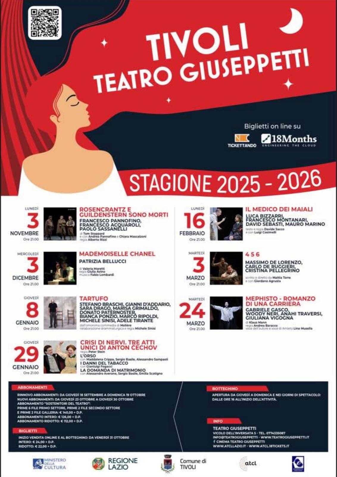 Il Teatro Giuseppetti, situato in Vicolo Della Inversata 5 a Tivoli, è pronto ad accogliere il pubblico con una programmazione ricca di appuntamenti di qualità, sostenuta dal Comune di Tivoli e dal Circuito ATCL del Lazio.