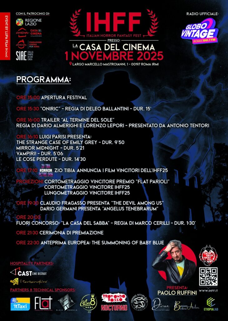 Il 1° novembre 2025 alla Casa del Cinema di Roma va in scena l’Italian Horror Fantasy Fest, il festival che dal 2010 promuove il genere contribuendo a diffondere la cultura delle produzioni italiane nel mondo.