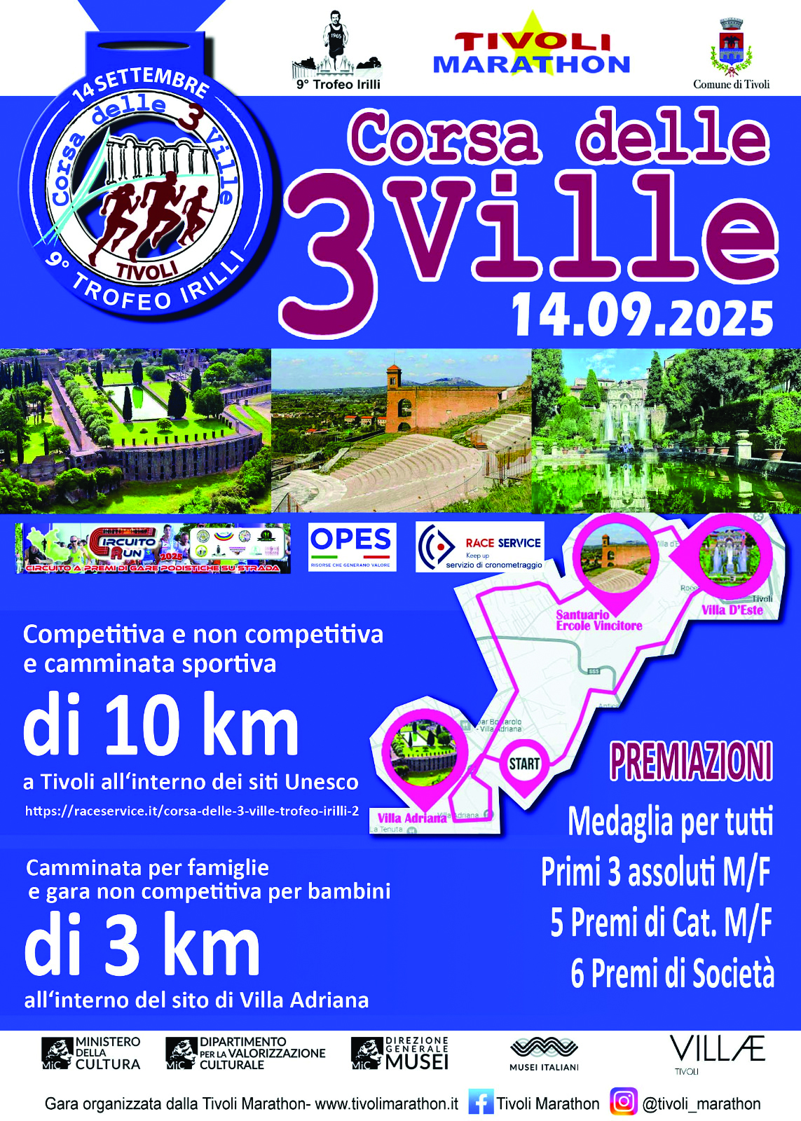 Tivoli si prepara per la “Corsa delle 3 Ville”: una camminata sportiva unica tra i siti UNESCO. La città accoglierà sportivi e amanti della cultura per un evento che unisce natura, sport e storia: la “Corsa delle 3 Ville – 9° Trofeo Irilli”. L’appuntamento, fissato per il 14 settembre 2025, promette un’esperienza unica, con una […]