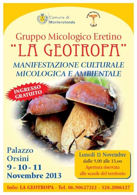 Monterotondo, prende il via dal 9 all’11 novembre a Palazzo Orsini l’iniziativa del Gruppo micologico eretino dedicata ai funghi: “La Geotropa”. Lunedì spazio alle scuole del territorio. Testo da visualizzare in slide show