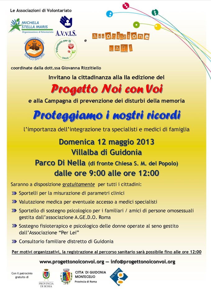 Guidonia Montecelio, continua la Campagna di prevenzione dei disturbi della memoria, con la partecipazione di neurologi dell’associazione LARI in affiancamento agli specialisti e ai medici di base già in forze nel progettoNoi con Voi. “Dopo l’edizione del 2011-2012, che si è conclusa con l’evento del 26 maggio, i promotori del progetto, riconoscendo il valore e […]