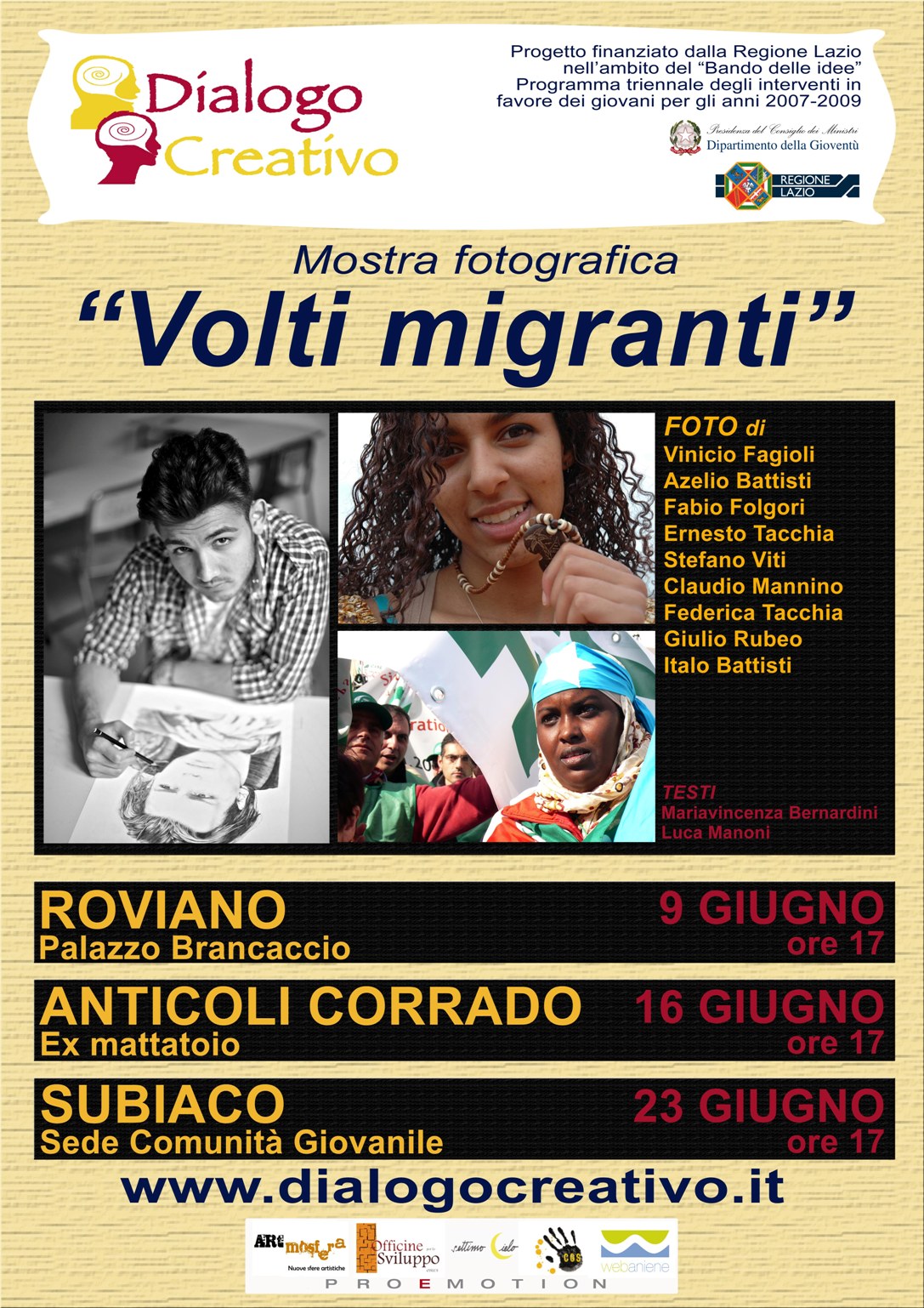 Una mostra fotografica itinerante nella valle dell’Aniene sui “Migranti”, ha preso il via da Roviano la rassegna che toccherà poi Anticoli Corrado e Subiaco. E’ partita il 9 giugno la mostra itinerante “Volti migranti”, curata dall’associazione Artmosfera all’interno del progetto DialogoCreativo e finanziata dalla Regione Lazio nell’ambito del “Bando delle idee” – Programma degli interventi […]