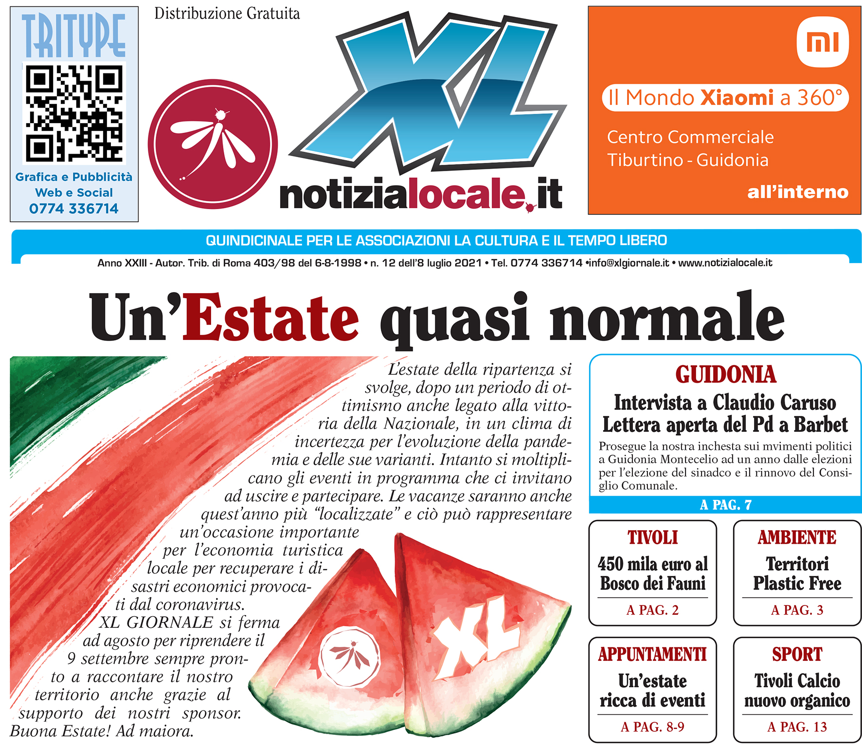 XL Giornale Online e Cartaceo (10.000 copie) nei nostri espositori a Tivoli e Guidonia il nuovo numero di XL GIORNALE • Ambiente: stop alla plastica monouso • Si rimuove la Politica dopo la pausa per la pandemia • Il PNNR e i progetti della Regione Lazio • La giornata del camminare con i Giganti dell’acqua • […]