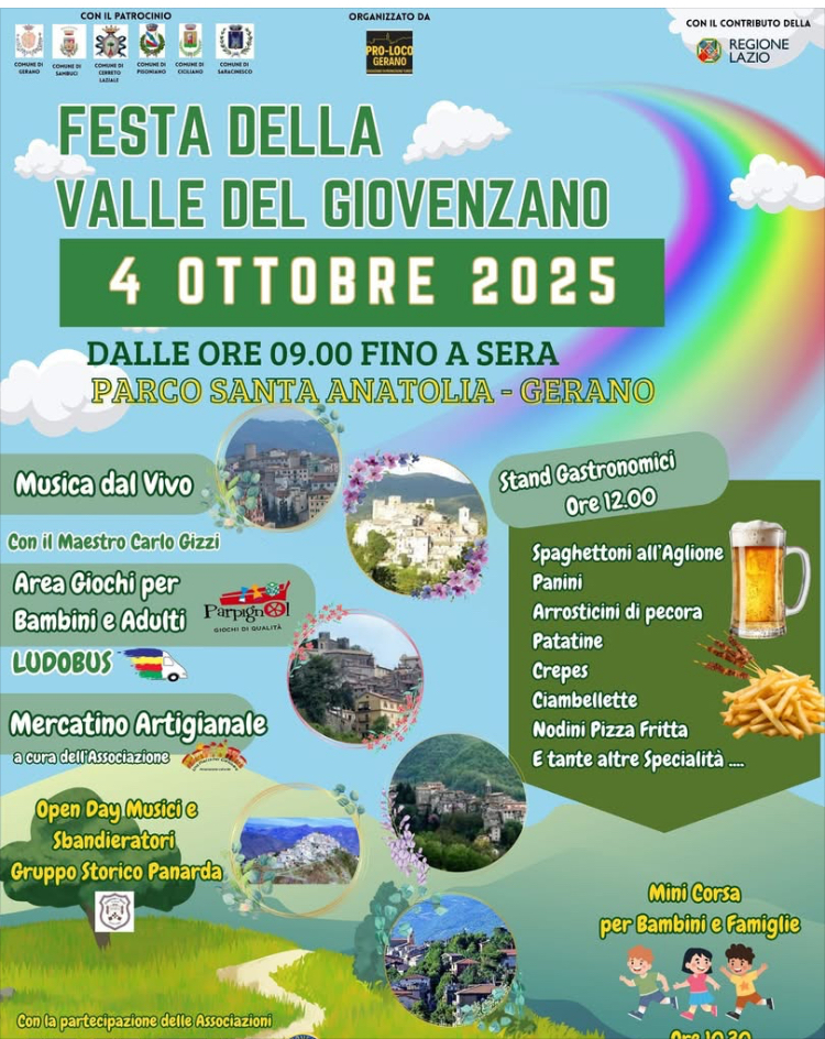 Gerano – Il Parco Santa Anatolia ospiterà per l’intera giornata di sabato la nuova edizione della Festa della Valle del GiovenZano, appuntamento organizzato dalla Pro Loco di Gerano con il patrocinio dei Comuni del territorio e il contributo della Regione Lazio. Il programma prevede attività per tutte le età: musica dal vivo con il maestro […]