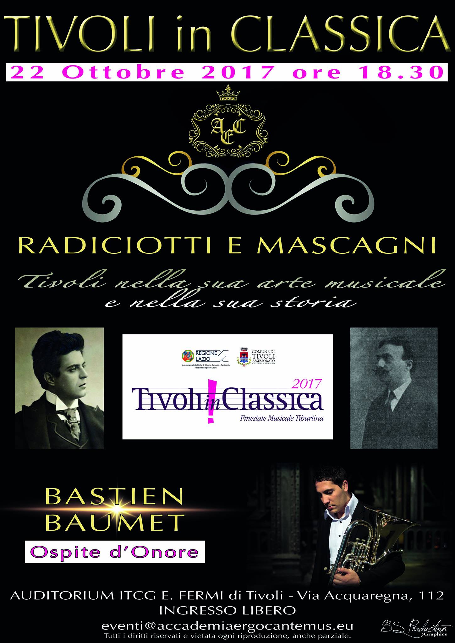 Torna Tivoli in Classica 2017 Grande Concerto il 22 Ottobre Tivoli in Classica 2017: concerto “Radiciotti e Mascagni: Tivoli nella sua arte musicale e nella sua storia”. L’Ospite d’onore della serata sarà Bastien Baumet. L’appuntamento è per il 22 ottobre 2017 alle ore 18.30 presso l’Auditorium ITCG E. Fermi di Tivoli in Via Acquaregna 112- Ingrasso […]