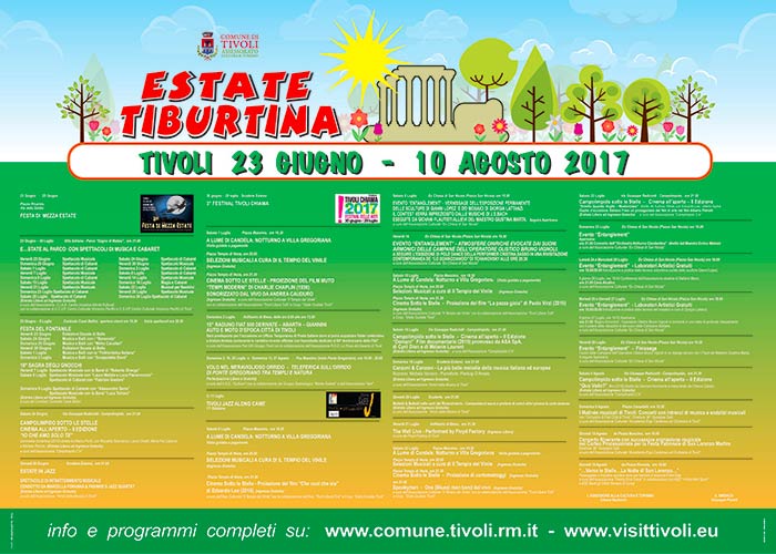 Festa del Fontanile a Casal Bellini Organizzata dal Comitato Contrada Casal Bellini con il patrocinio del Comune di Tivoli, la manifestazione – nata nel 1986 – è ormai un appuntamento fisso dell’estate tiburtina. Per cinque fine settimana consecutivi, piazza Padre Pio si accende con musica, balli e tanto divertimento. PROGRAMMA: Venerdì 6 giugno Esibizioni delle […]