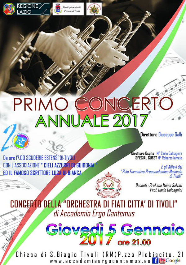 Musica, presso la chiesa di San Biagio, iniziativa inserita all’interno delle manifestazioni natalizie di Tivoli che si svolgerà il 5 gennaio 2017 alle ore 21.00 con il primo concerto annuale della “Orchestra di Fiati Città di Tivoli” composta dai Professori della Musica di Accademia Ergo Cantemus e dagli allievi del “Polo formativo dei Corsi Preaccademici di Tivoli”. […]