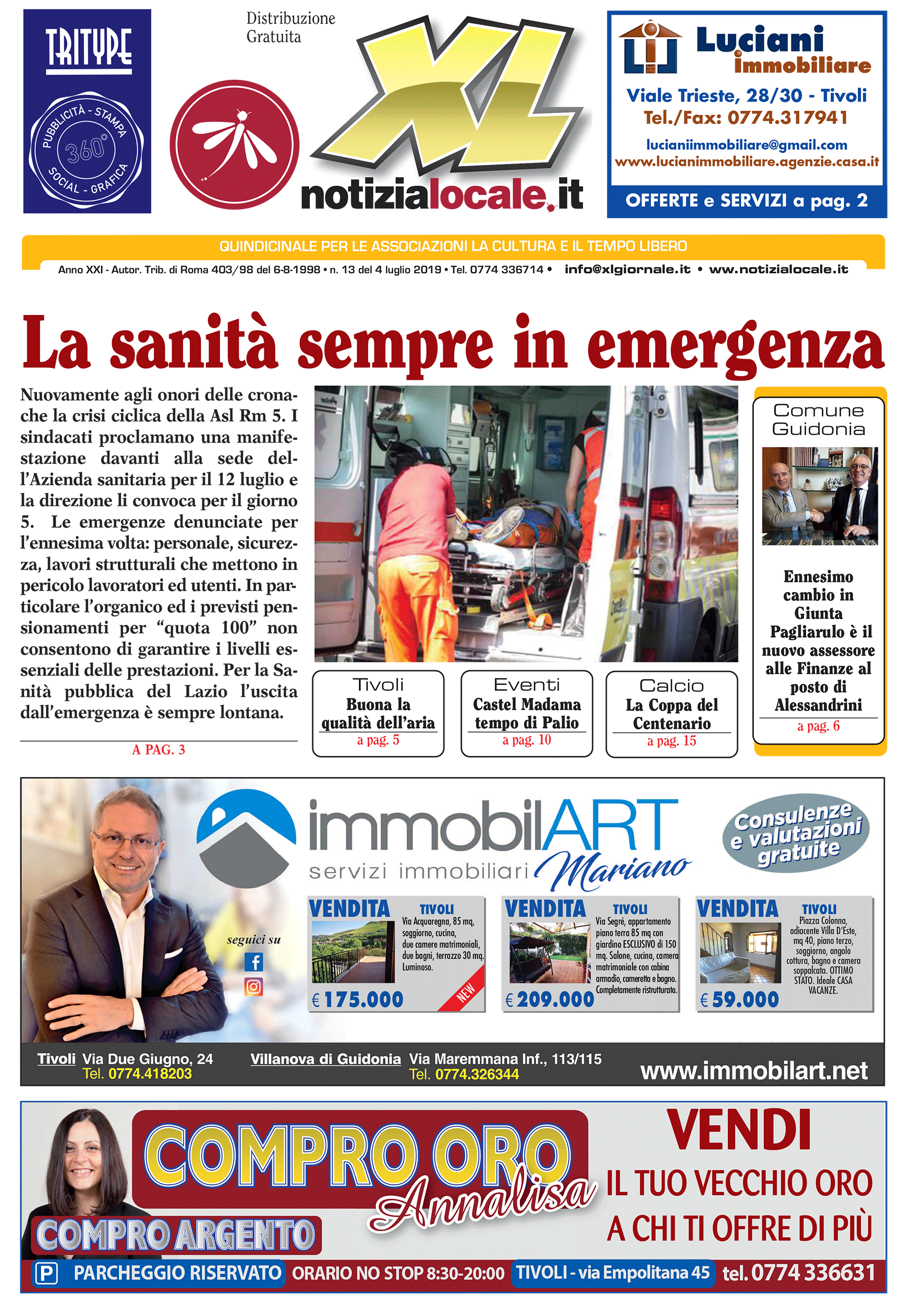 Online e Cartaceo (10.000 copie) nei nostri espositori a Tivoli e Guidonia il nuovo numero di XL GIORNALE • Giubileo 2025: i lavori • Cronaca: emergenza sicurezza sul territorio? • Cultura: Palio Madama Margarita • Tivoli: Estate con l’Unione Com •Sport: raccolta fondi per campo di basket a Guidonia