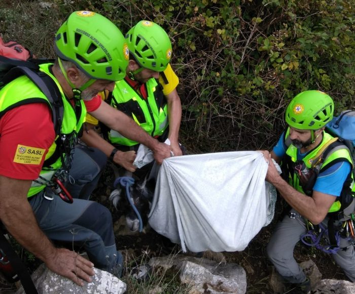 Capra salvata dal Soccorso Alpino, era incastrata tra due rocce accanto ad un dirupo