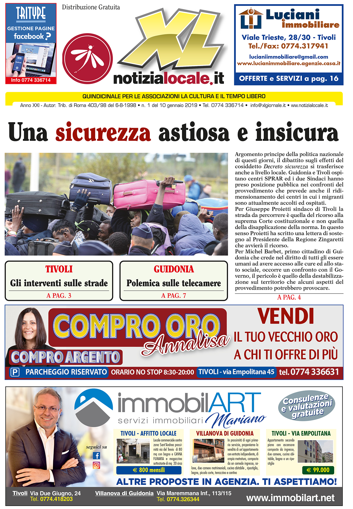 XL Giornale Online e Cartaceo (10.000 copie) nei nostri espositori a Tivoli e Guidonia il nuovo numero di XL GIORNALE • TIVOLI: gli interventi sulle strade • AUTOSTRADE: La societa Strade dei Parchi, aumenti sospesi • GUIDONIA: polemiche sulle telecamere • CULTURA: approdano gli artigiani digitali a Tivoli Sfoglia il giornale