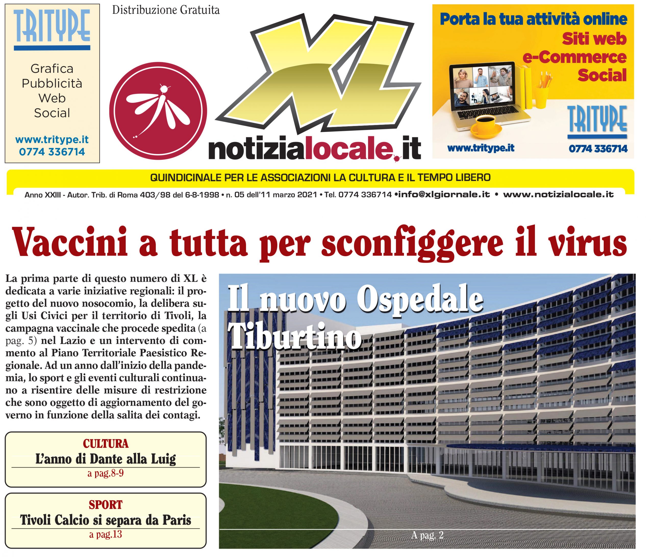 Online e Cartaceo (10.000 copie) nei nostri espositori a Tivoli e Guidonia il nuovo numero di XL GIORNALE • Territorio: piove ancora sul bagnato! • Tivoli: l’assemblea pubblica su Via dei Sosii • Isruzione: il futuro della scuola Taddei? • Giornate Europee dell’Archeologia •Sport: raccolta fondi per campo di basket a Guidonia